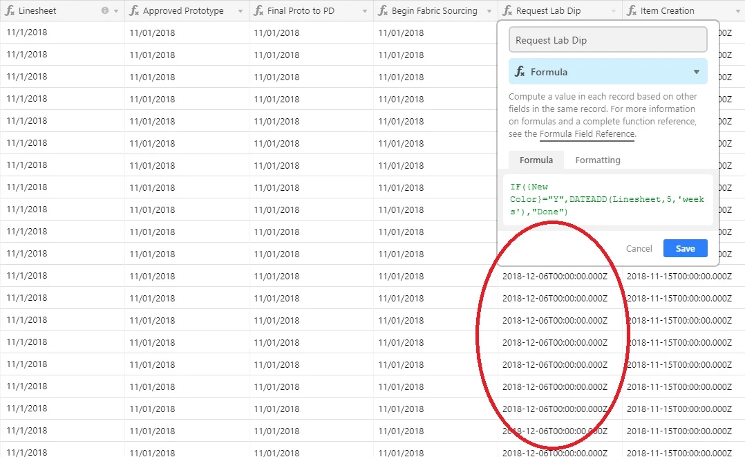 ‘Linesheet’ is a DATEADD formula, if that matters.