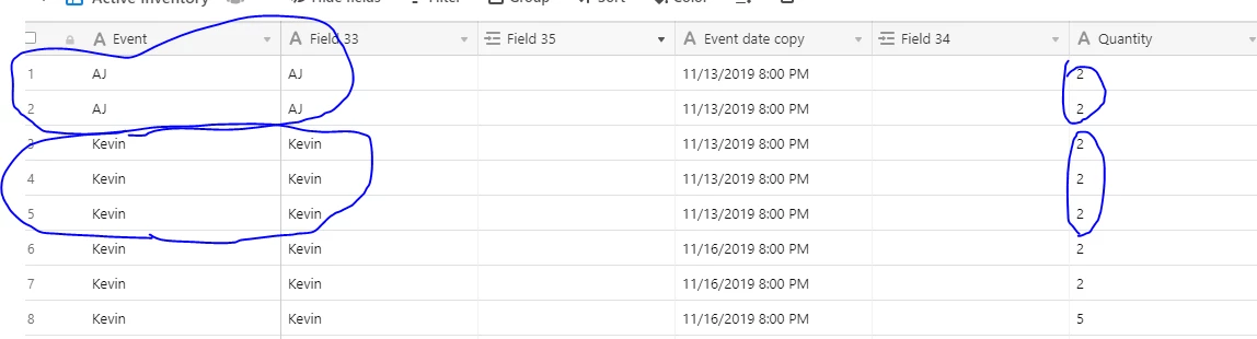 Next, in your “Events” table, create a Rollup field, let’s call it “Quantity Query”, with this formula: