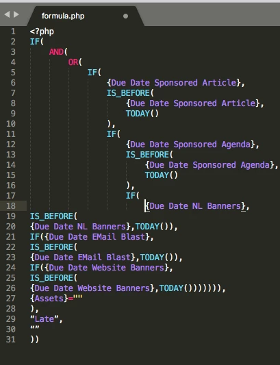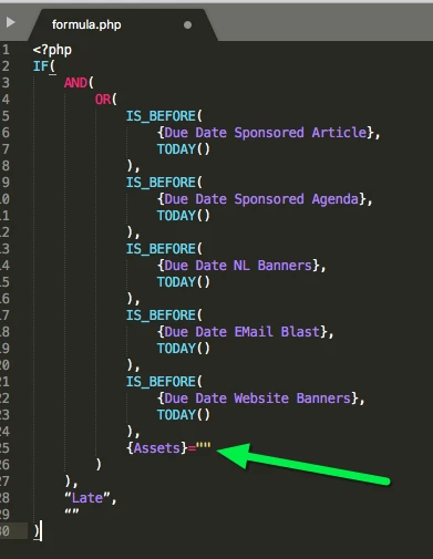 I am trying to return “Late” when one or several function fields have a date that’s before today AND an attachment field is empty. I have tried the following formula but it’s not working. What am I doing wrong?
