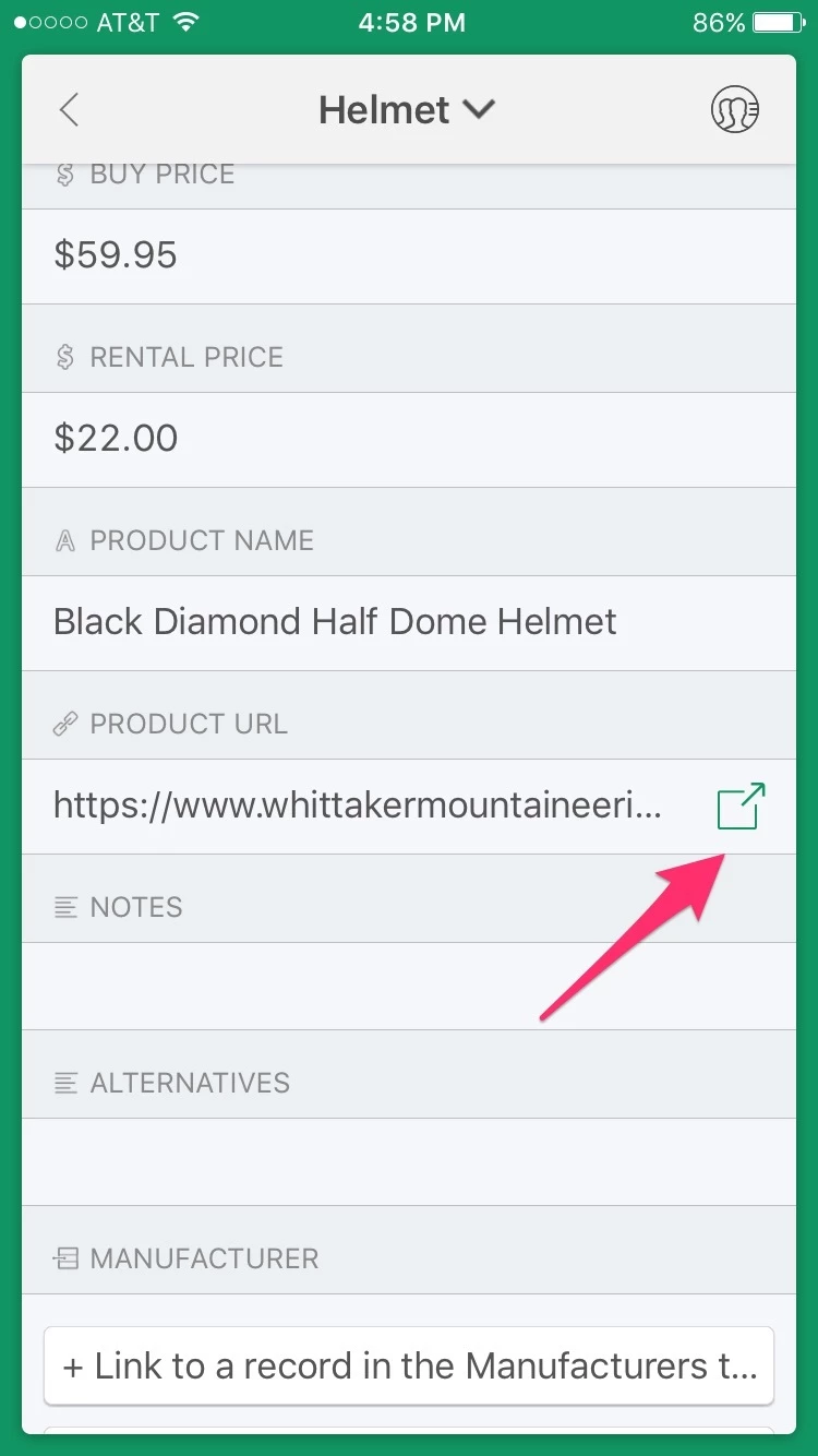 I was expecting that a hyperlink in a URL field (mobile app) would automatically open in the browser, but the only way I can use the URL is to select, copy, & paste, the go to Safari.