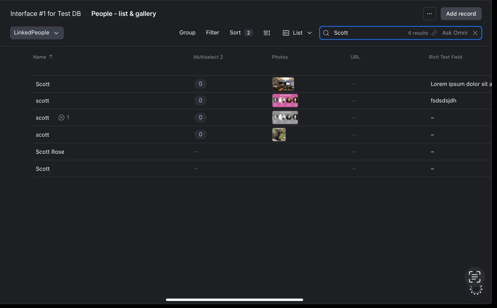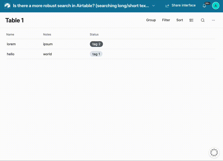 We use Airtable for project management and one challenge we often have is searching for something via a keyword or name--something that would help us find a project without knowing the exact title of the record.