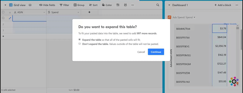 After selecting all data, I copy and paste into one of my tables, but it seems to be only able to commit up to 1000 records to the clipboard.