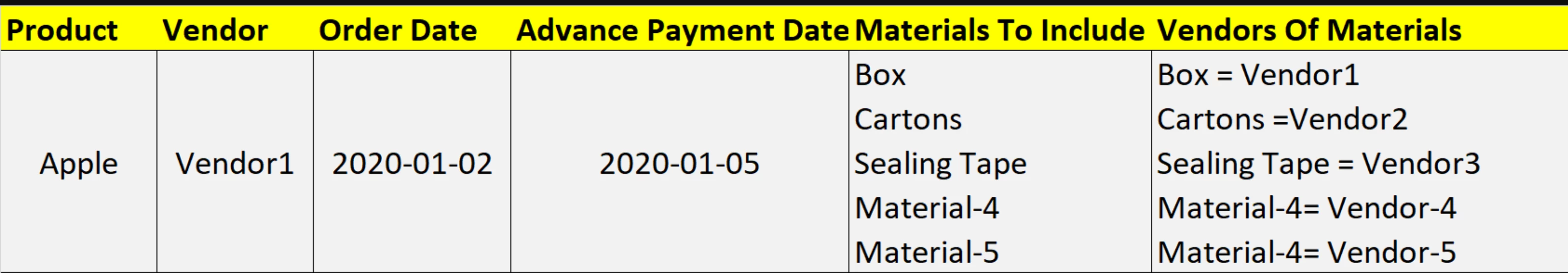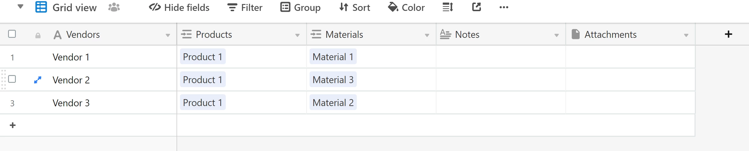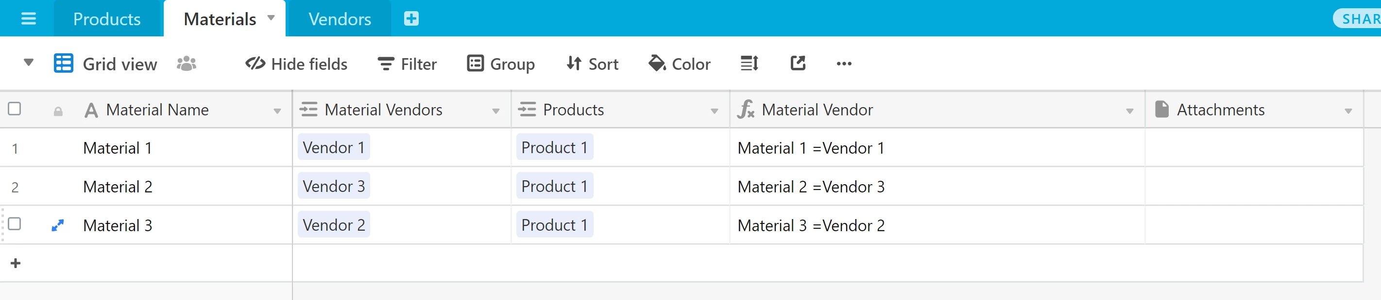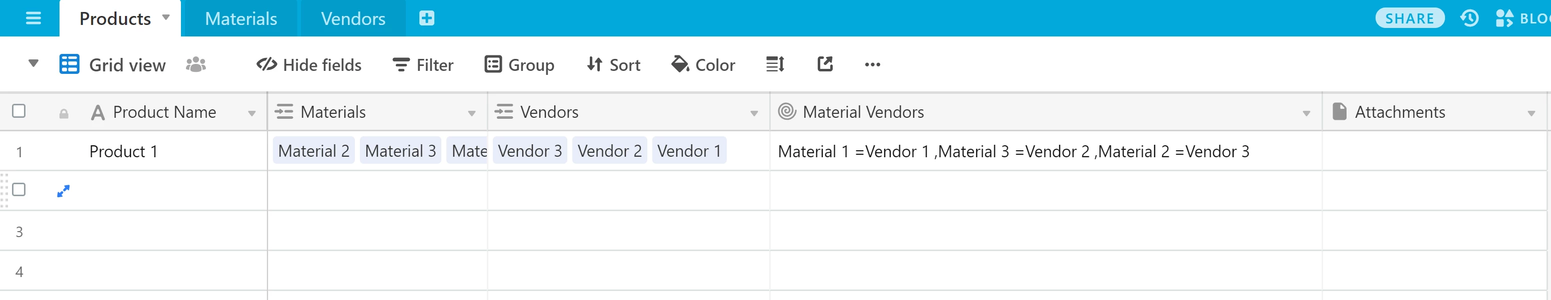 i am new to Airtable , i am trying to manage the products vendors and their materials.