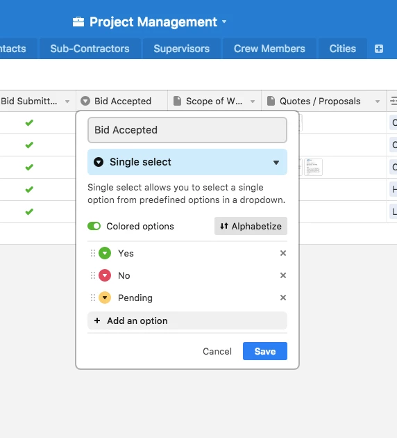 Then you will be able to choose that field (in my case, “Bid Accepted”) as the determiner of the color for the map markers.