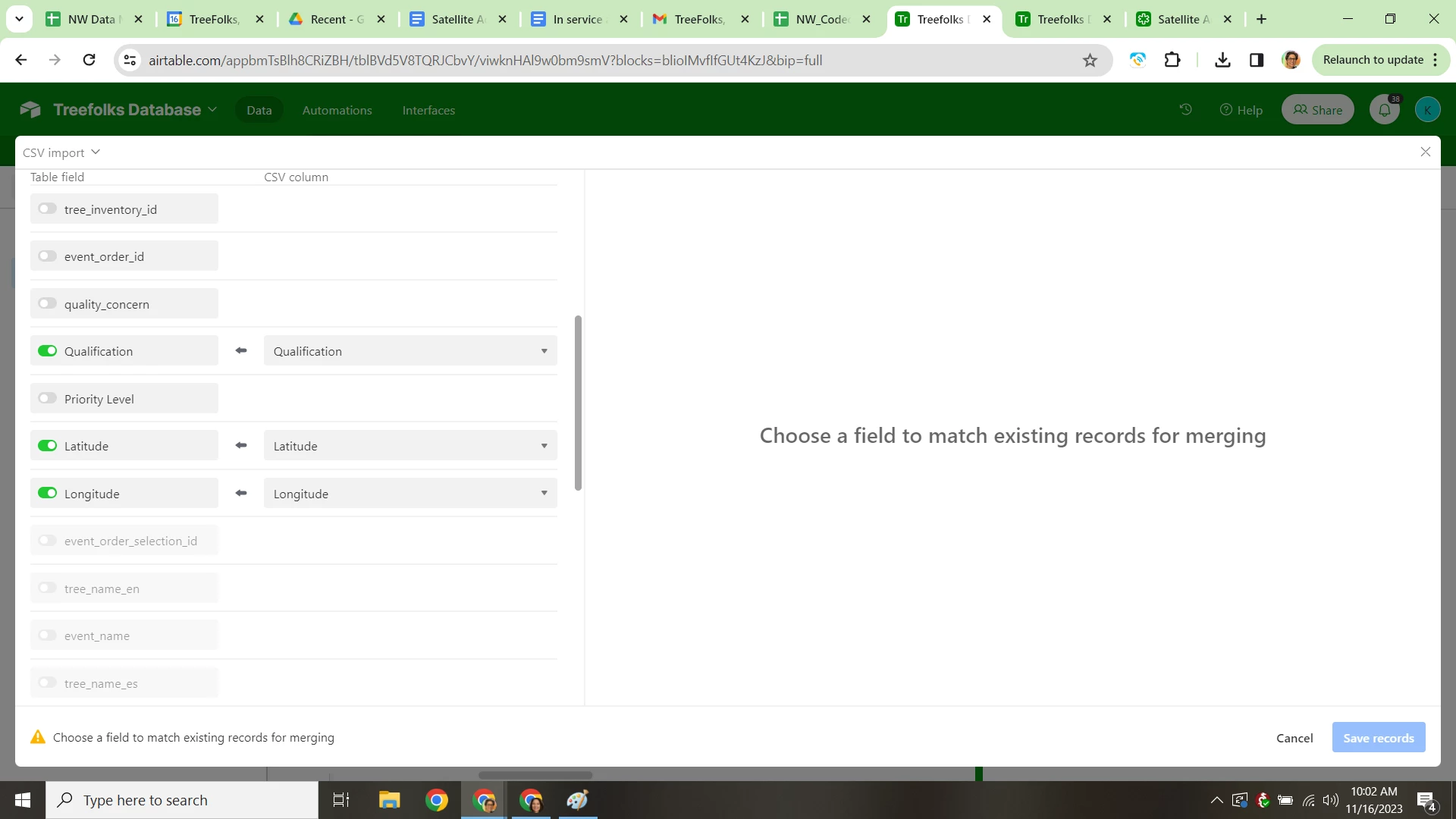 I'm trying to merge a CSV but the field that I need to map to is not available to select. I can't select the field I need as the merge field. It is not one of the options in the "choose a field" drop down.