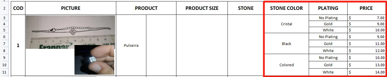 I'm trying to create something similar to what I do with spreadsheets, it's like a product catalog but using multiple rows on a single entry so I can use different values for each variation of the  same item. (image attached)