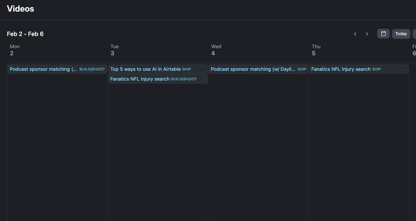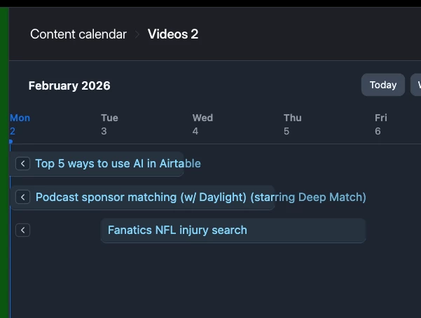 I’ve tried using standard filters and Interfaces, but I’m not very experienced with Interfaces yet, and my attempts have not worked as expected. I also noticed that a competitor seems to have a similar 7-day operational view, but I haven’t been able to figure out how to achieve this in Airtable.