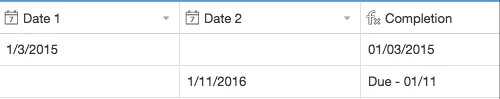 IF(JobDoneOn = “” , “Due” & DATETIME_FORMAT(NextDue, ‘DD/MM’) , DATETIME_FORMAT(JobDoneOn, ‘DD/MM/YY’))