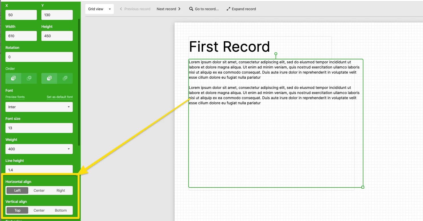 Hey! The easiest way to do this is to justify it within the text field itself, and then use Airtable’s block to align it
