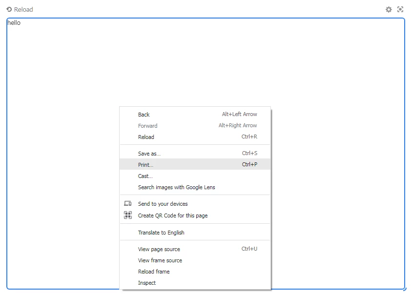 When I right click on my extension frame and select print to pdf, the print preview window is blank, even if my extension just prints "hello".