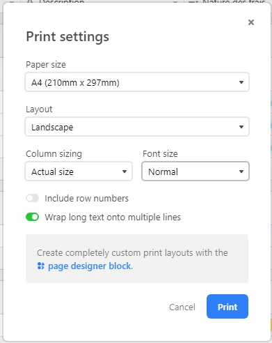 But it doesnt seems possible to print it out in that format. When I print it looks very bad. The whole table is compressed in 1/10th of the page, and the font is tiny (I can only post 1 picture per post, due to my account being new, so I posted a screenshot as a reply).