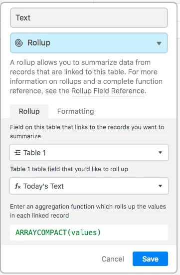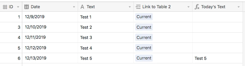 I need to look in table 1 for today’s date and return the text. How do I do that?