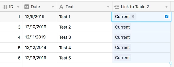 And I have a table 2 with the same fields. However in table 2 the data field is Today () and has only one row.