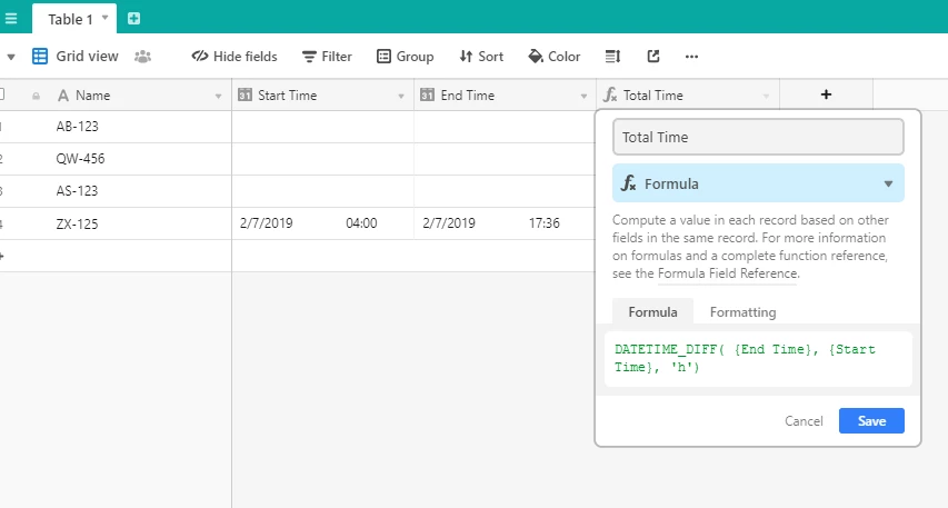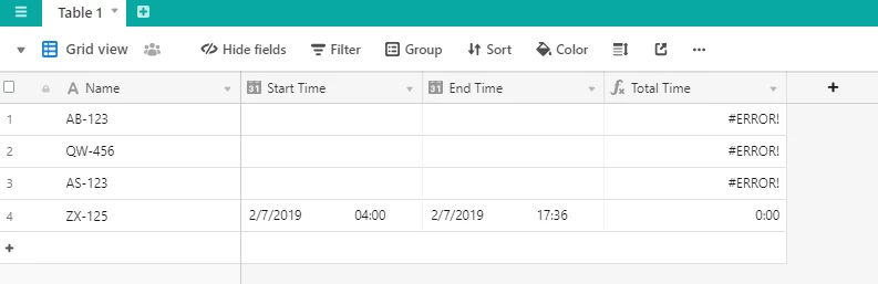 This should be a simple work flow. I am pretty sure I am missing something basic and simple. When I start a task, I input the start time. When completed, input the end time. Pretty simple so far. In the example below we see I worked from 4am to 17:36 in the evening. That should be 13:36 hours worked. The table gives me 00:00. What am I doing wrong? Thank you to anyone who can help me with this relatively simple (I assume) issue.