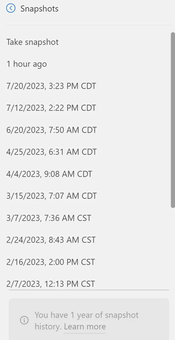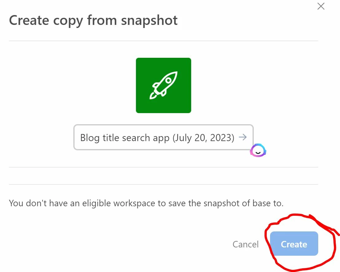 I need to revert an airtable back to 7/20/23. It is in the list attached. But the Create button will not let me select it or any other date on the list.