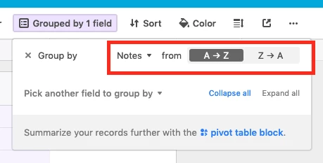 I have a list of projects grouped using the Project Name field. I’d like to display the groups in order by completion dates.