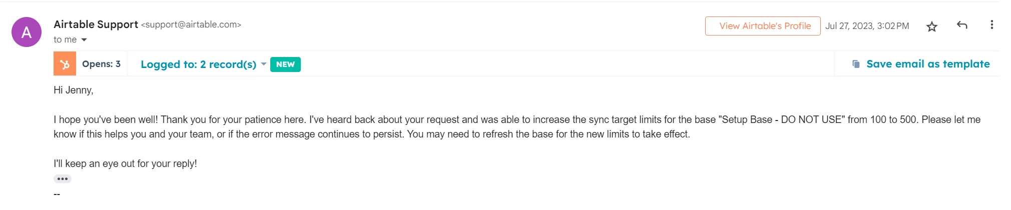 I highly doubt that you will get 500 syncs, considering the new pricing plans that just went into effect. Airtable only offers a maximum of 20 synced tables per base, so if you were already at 100, that’s already 5x over the limit.
