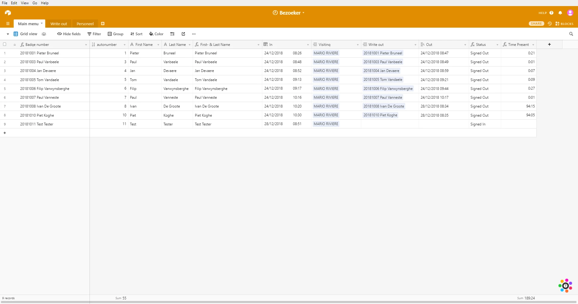 I note in the form to Signed Out that you see the full list and I would like to see only the people who’s signed In (see annex)