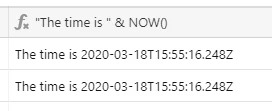 "The time is " & NOW()