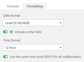 - the format settings for formulas that produce a date/time