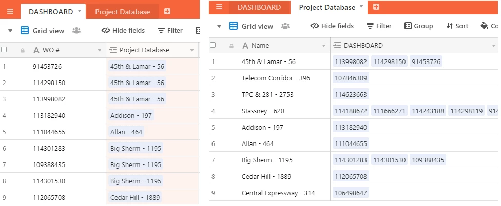 I’m trying to better understand what you mean; are you asking why in your 'Project Database’ there are those work orders showing up under the 'Dashboard’ field?
