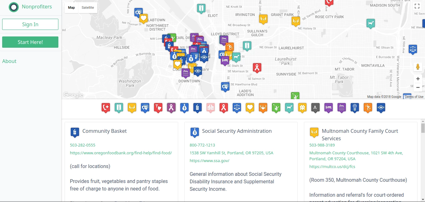So last year I built out a database of nonprofits in Portland to help the homeless community here. It started out with a Google spreadsheet of resources that I collected to help myself, but as other homeless folks were finding it useful I taught myself how to build the app.