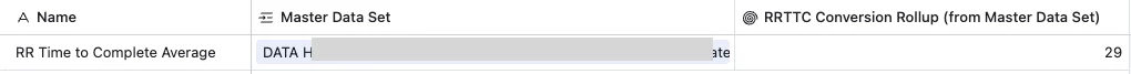 Where the {RR Time to Complete} field returns 0 when either (or both) of {RR Actual Start Date} and {RR Complete Date} are blank, the {Raw_RR_Diff} field, the {Raw_RR_Diff} field returns NaN. This is expected, because the Raw_RR_Diff column deliberately removed the error handling to try to find the source of the NaN on the rollup.