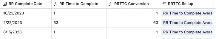 I created a FORMULA field called {RR Time to Complete} in which I calculate the difference between the {RR Actual Start Date} and the {RR Complete Date}. All worked fine (and I’ll explain more below) until I tried to create a Rollup to average the values in the {RR Time to Complete} column and kept getting a NaN error no matter what.
