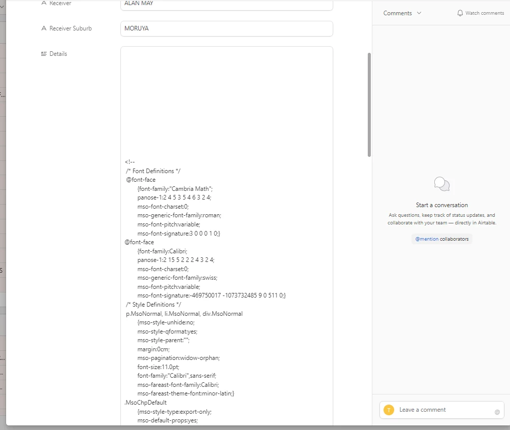 Hi There, We are copying / pasting data into a field and there is some code / script appearing above what we have pasted. Does anyone know how / why this has occurred? And how we fix it?