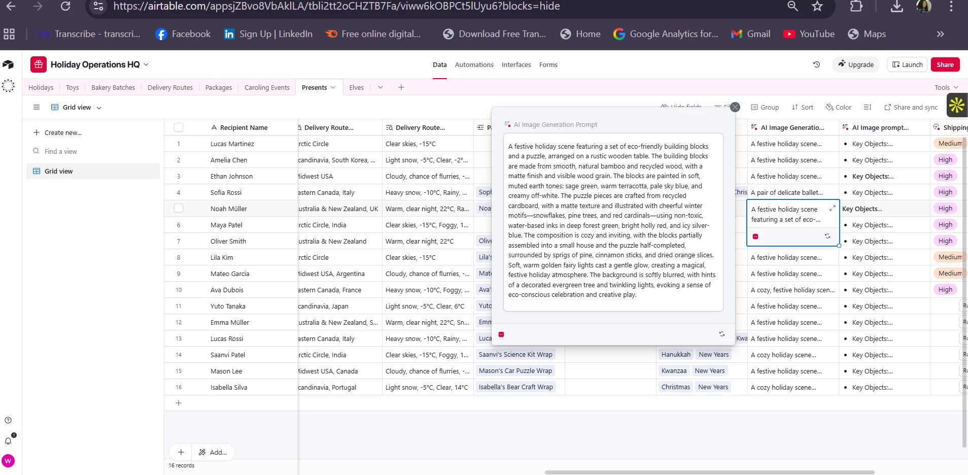 Add a new AI field with Omni that creates a detailed image prompt describing the selected gift or cookie in either the presents table or the bakery table.