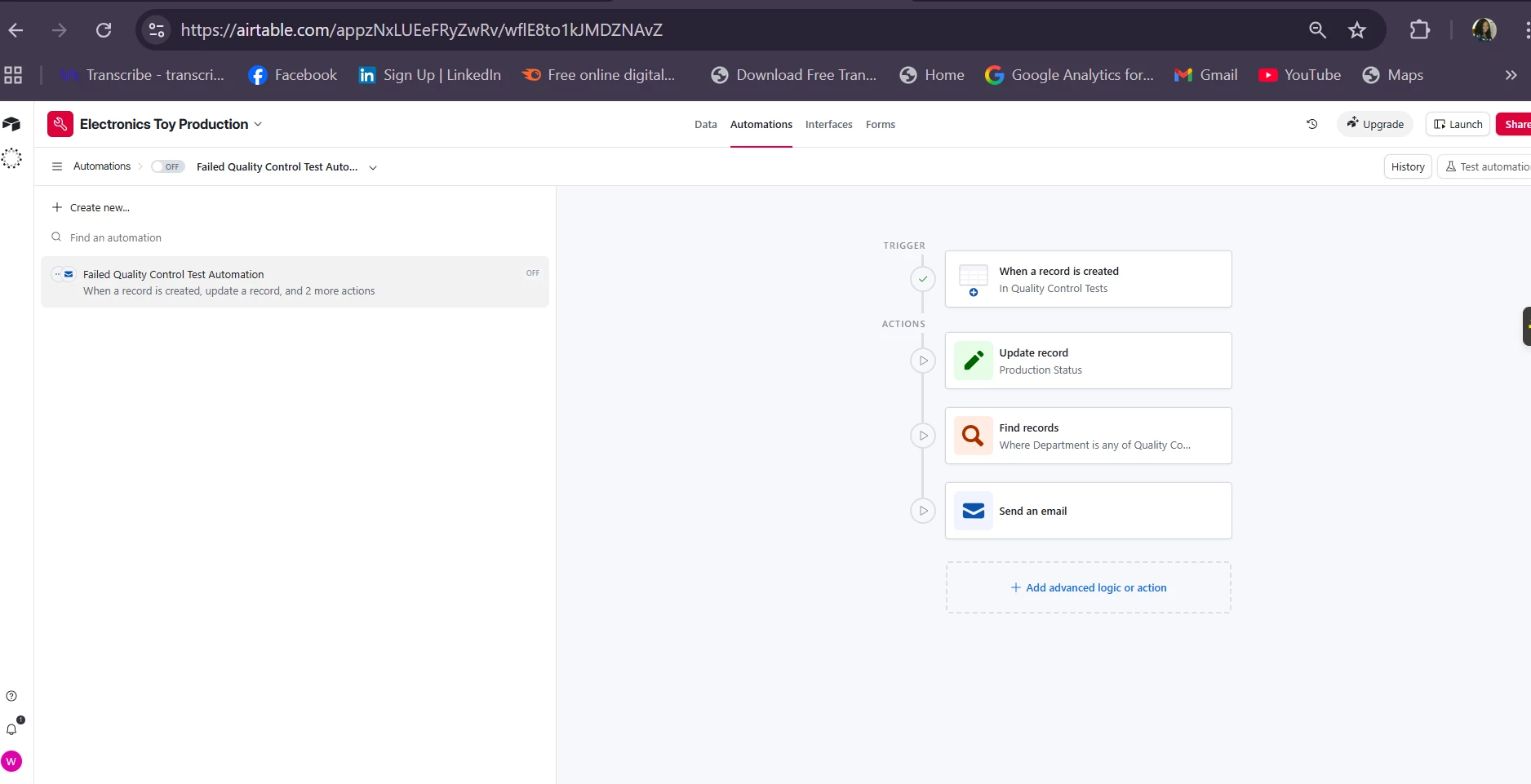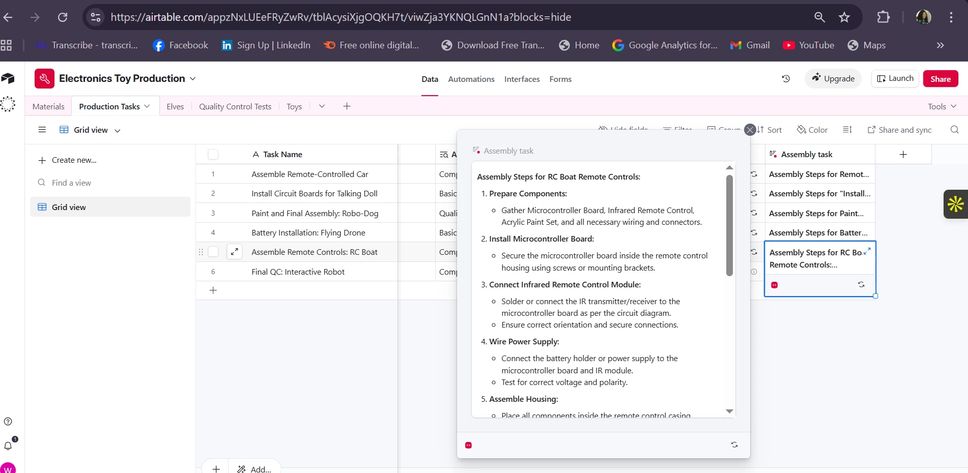 âGenerate an Airtable app/base specifically for managing production of this toy category. Include recommended tables, fields, relationships, and sample automations.â