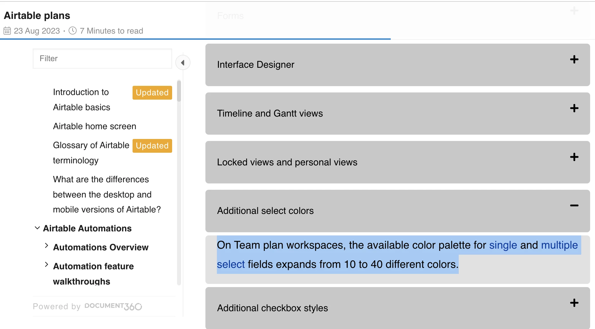 Normally on the Pro plan we had access to a color palette for single and multiple select that gave us 40 different colors. On the new bases we create today we are choked back down to just 10, telling me to upgrade if I want more colours.