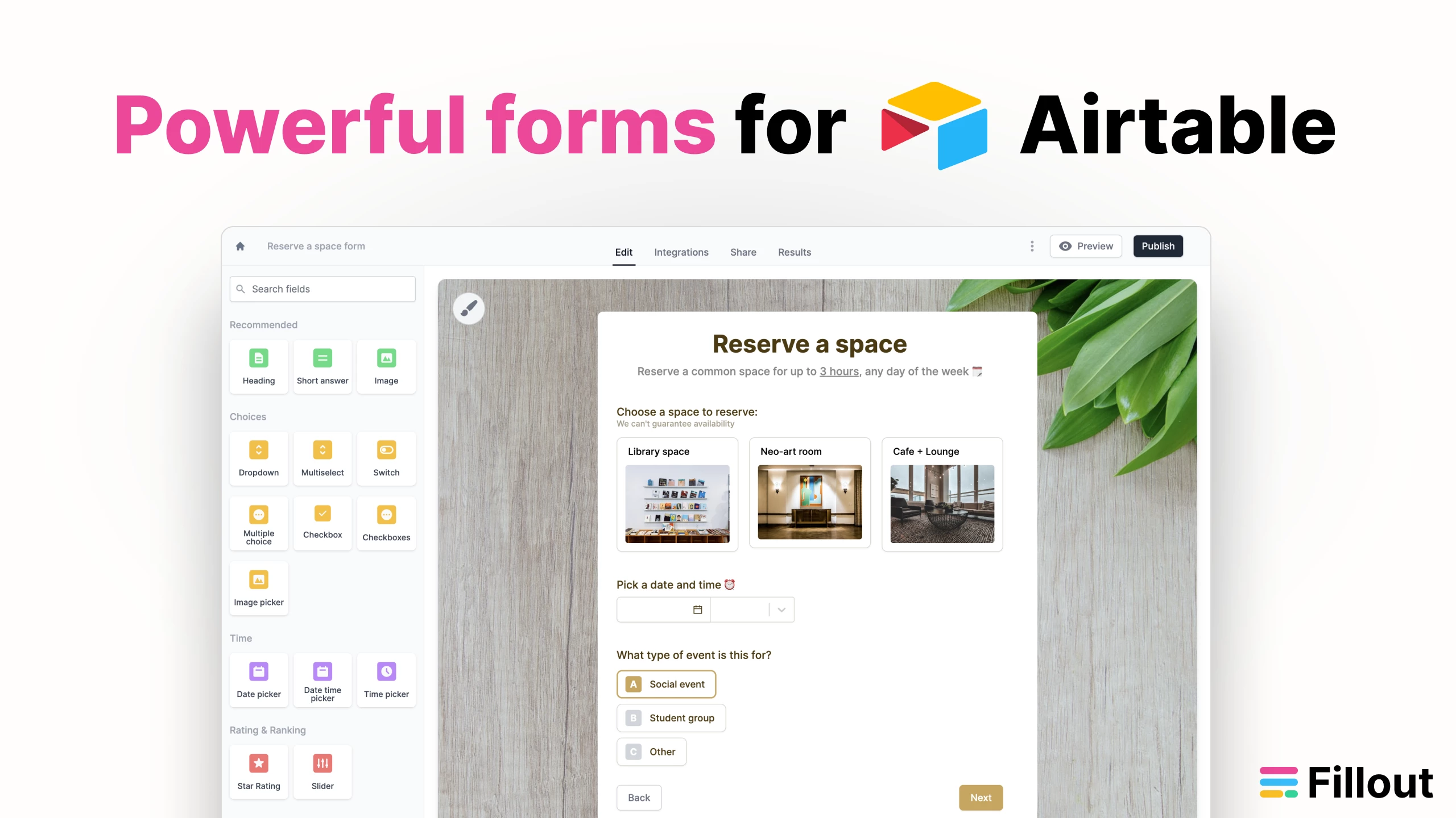 Hi! We got great feedback from the community a few months ago and decided to go all-in on Airtable. Your can sign up for free, here: https://fillout.com/airtable/