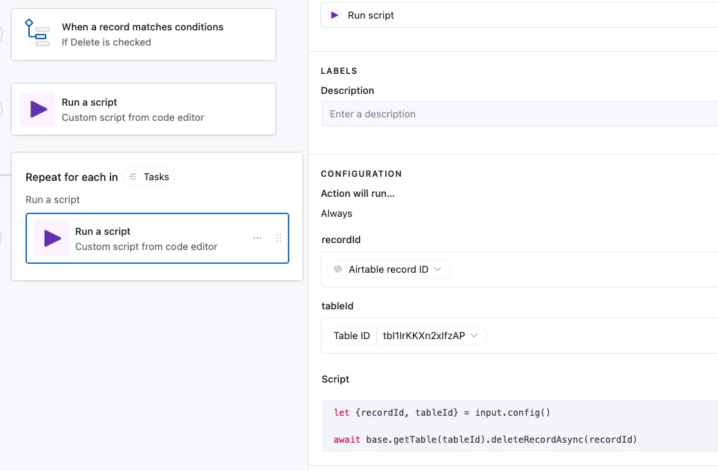 Here’s a quick guide on how to create an automation that deletes records automatically! (Needs a paid plan for access to the Run a Script automation action)