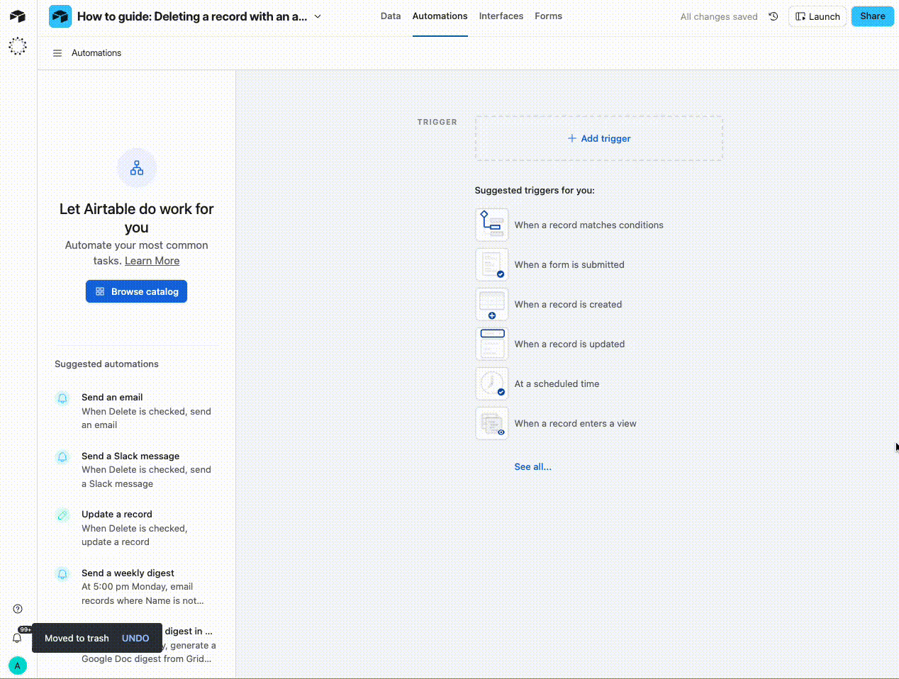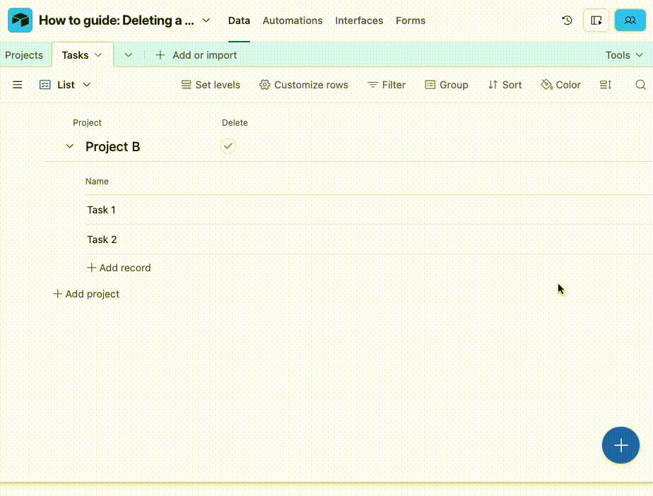 Optional but useful: The example base also includes an automation that deletes linked records automatically!