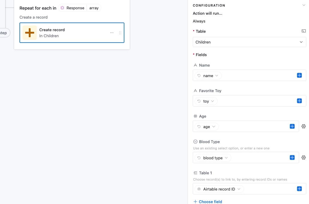 We specify that Age should be a number, while Name and Toy can be strings. This helps keep the data clean and usable when we create records