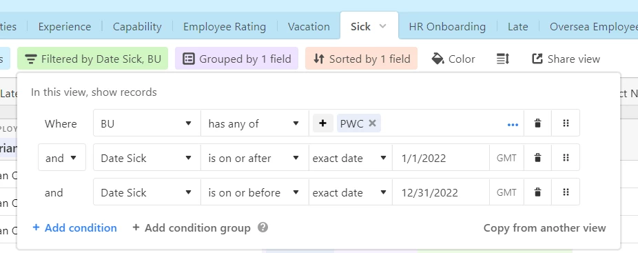 I really hope Airtable can auto-detect when filtering "date" type data and will have a date range option pop up automatically. When trying to pull out the report, it is very inconvenient to set up 2 filters with "and" function.