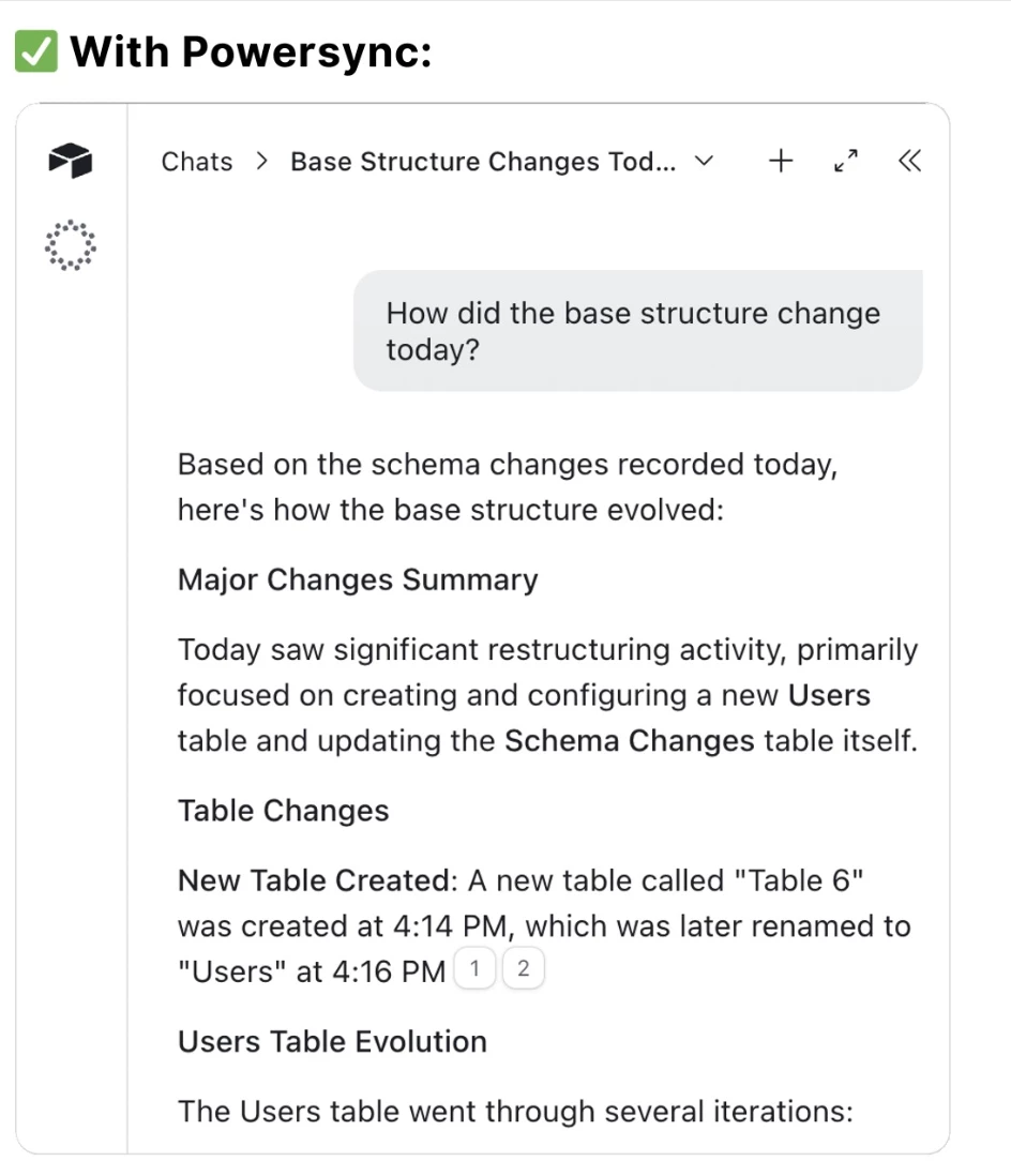 If you use the table approach, you can review the history yourself and keep track of what your colleagues or clients have modified. You can also ask Airtable Omni to summarize recent changes automatically - it works nicely with this dataset.