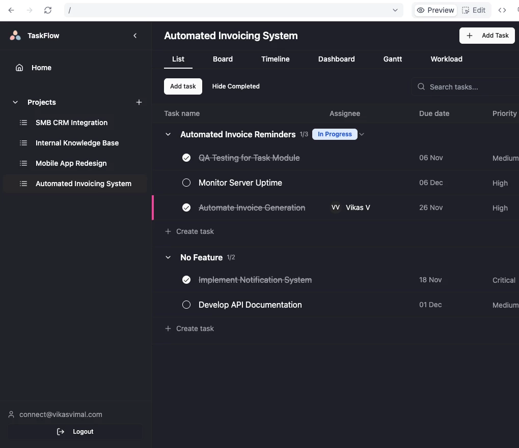 Here’s an Asana-like app I built in under 4 hours. Backend is Airtable.