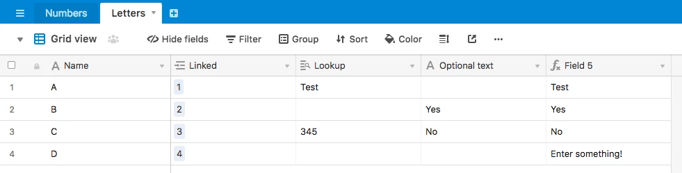 Can you write a logical if statement based on a data base. So if the information in the database exist it populates and fills out the fields as it does now using look up. If it returns N/A can the field types for each field in that record then be single line text for a manual input. Either by the person in the form filling it out or me inside the table.