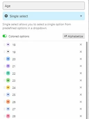 At first, the other two columns were number columns and the age column was a single select column. I have now updated the other two columns to be single select but this doesn’t fix my issue.